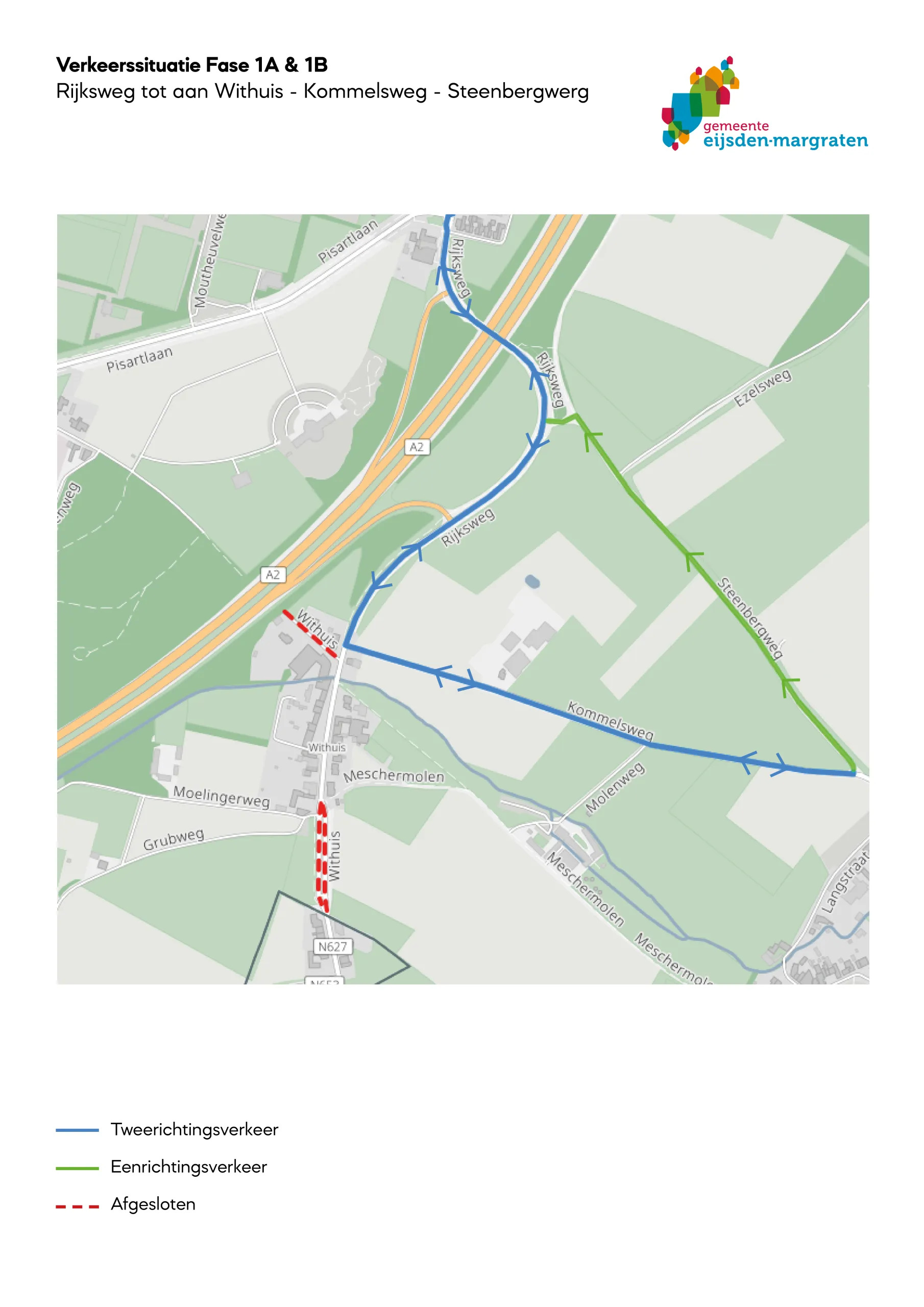 - Mesch blijft bereikbaar via de route Rijksweg – Kommelsweg – Steenbergweg.